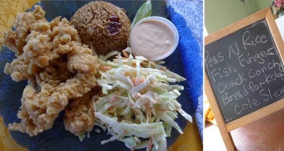 the plan was to drive to daniel’s cafe, in middle caicos, for lunch, but (un)luckily enough our car had a flat tire, so we found this great local spot for lunch – frank’s cafe, it turned out to be a great home cooked lunch with the freshest cracked conch!